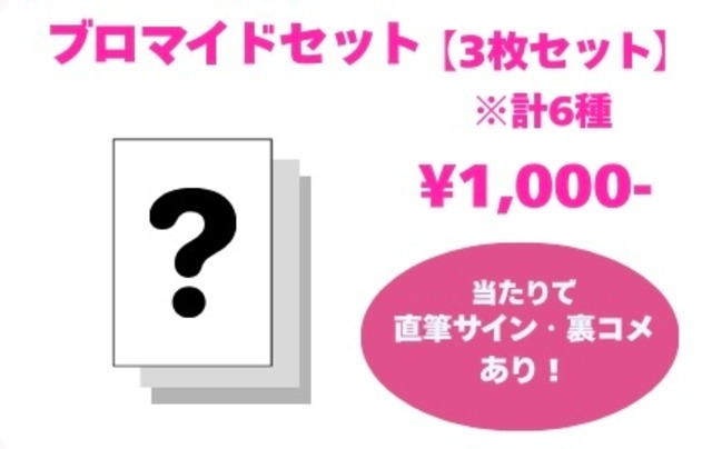 藤野まいは生誕祭2025のGOODSになります。 藤野まいは生誕 撮り下ろし【生誕ブロマイド】 こちらの商品は受注販売となります。 ※3枚1セット(うち1枚にサイン入り) ※1つの注文にまとめていただくと送料はまとめて1つとなりますが、注文が分かれてしまうとそれぞれに送料が発生してしまいますので、ご注意ください。 ※販売期間終了後2週間前後を目安に発送いたします。 ※ご注文後のキャンセル、変更は致しかねます。 ※こちらの価格には消費税が含まれています。 ※同時購入の商品価格6,000円ごとのご購入につき【ポイント引換券】を同封いたします。 引換券は現地でのライブにてスタッフへお渡しいただくことで、ポイント付与が可能となります。 ※ポイントは譲渡禁止 ※ポイント引き換えは到着月の翌月末まで ※ポイント引換券は紛失・破損の場合、再発行はできませんので大切に保管してください。